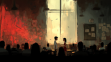 コーヒーを飲みながら周りを見渡すと、突然、怪しい行動をする男性に気づきました。彼は彼女のテーブルの近くに立ち、落ち着きなく辺りを見回していました。彼女は彼の詳細を観察しようとしましたが、彼はすぐに立ち去りました。