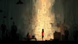翌日、ミナはポスターを見つけた。「科学者たちは私たちを守るために**ワクチンを開発(develop vaccines)**しています」と書かれていた。科学の大切さを改めて感じた。