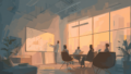 朝の会議で、佐藤さんは顧客対応を良くする案を求めた。ミカには案があったが、喉が詰まり、変に聞こえるのが怖くて黙った。会議後、他の人が2人組や小さなグループで出ていくのを見た。彼女は少しだけ席に残り、大きなオフィスでひとりの(solitary:ひとりの)存在のように感じた。